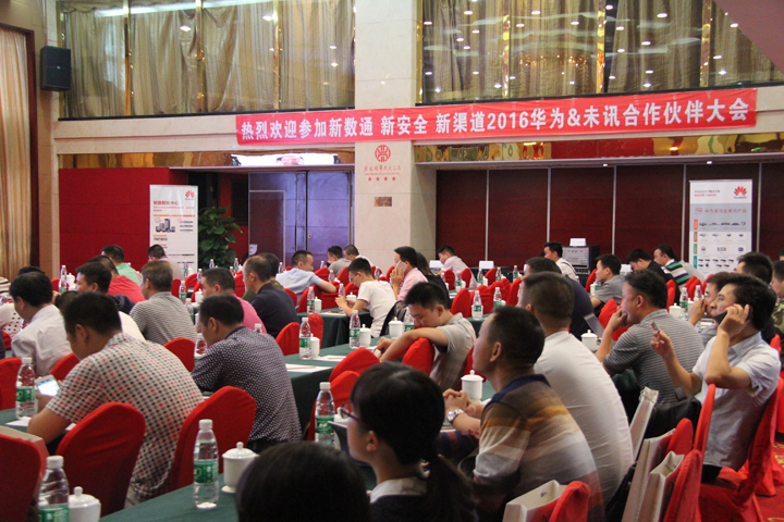 [中國,湖南長沙,2016年9月22日] 由湖南未訊網絡主辦,華為長沙辦協辦的“2016年華為&未訊共進長沙合作伙伴大會”正式在紫東閣華天大酒店隆重召開。大會以“新數通、新安全、新渠道”為主題,展開全程會議,并取得圓滿成功!